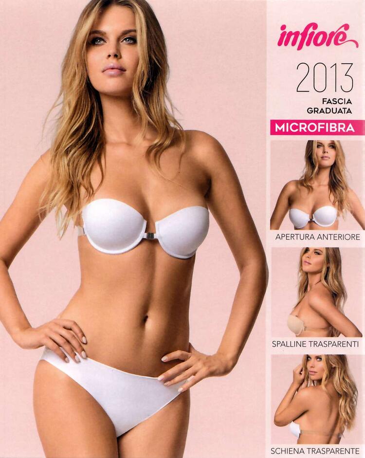 Reggiseno Infiore 2013: fascia graduata in microfibra con schiena e spalline trasparenti. Perfetto per abiti scollati, offre sostegno e invisibilità.
