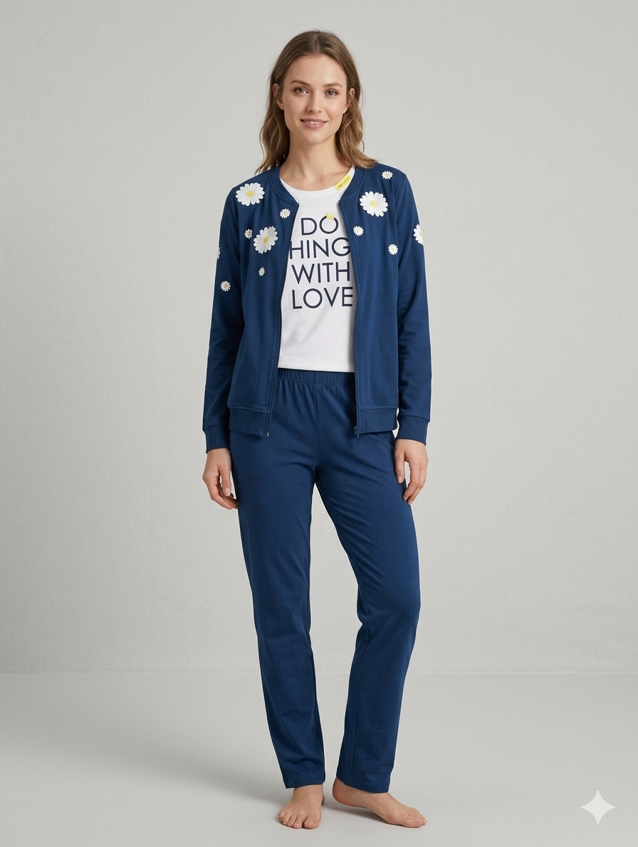 Completo 3 Pezzi Noidinotte “Love & Daisies” – Blu Navy in taglia S.