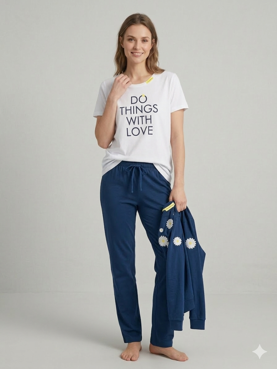 Set Relax donna marca Noidinotte “Do Things With Love” – Completo 3 Pezzi in Cotone – Blu Navy – solo taglia S